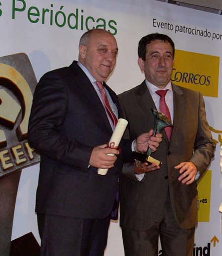 In Vertretung von José Carlos de Santiago, der sich wegen seiner Teilnahme an den Arbeiten bei Pow Wow in den Vereinigten Staaten befand, nahm den in der Nacht der Publikationen in Spanien vergebenen Preis Julián Carazo (links) entgegen, der das Büro der Gruppe Excelencias in Madrid leitet.