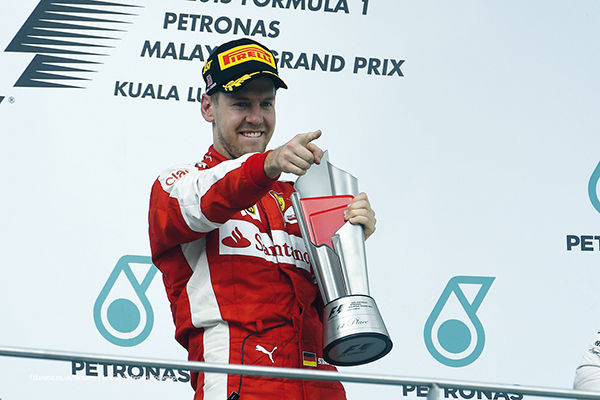 Malasia marcó la diferencia. En clasificatorias el Ferrari de Sebastian se alistó segundo por delante de Rosberg (Mercedes) y por detrás de Lewis, mientras que los Williams fueron desplazados a la séptima y octava posición liderados por el brasileño. El segundo coche de los de Maranello, pilotado por Kimi, quedó fuera de la Q3. En la carrera pasó lo inesperado, dominio de Sebastian y victoria de Ferrari, Lewis fue desplazado al segundo puesto y Rosberg a tercero. Para confirmar la supremacía de Ferrari sobre Williams, Kimi terminó cuarto por delante de Bottas y Massa, en ese orden.